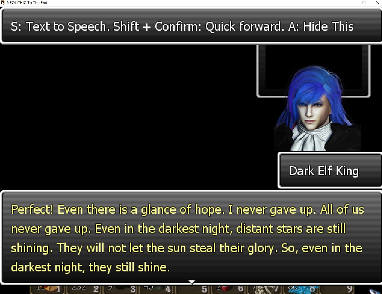English ############Content############### [The Legend of An Elf King]The story content has been worked on. It's currently still inaccessible as 35k words (in three languages) later the last part of the story in the Sealed Palace is still not finished. 简体中文 ##########Content################# 【黑暗精灵王传说】故事剧情内容继续施工。目前依然无法进入这部分的内容。因为在3万5千个字/词(三种语言)之后,封印宫殿中的剧情还是没有完结。