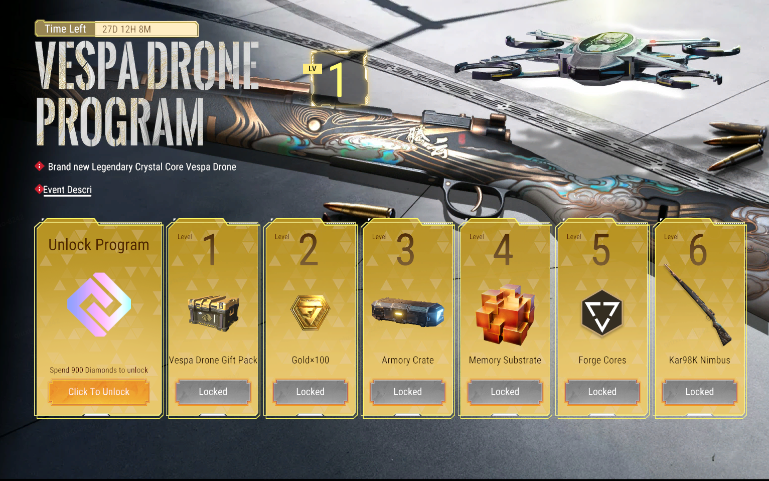 ■ Spend points to access the Drone Program. Daily logins increase your program level and unlock rewards.