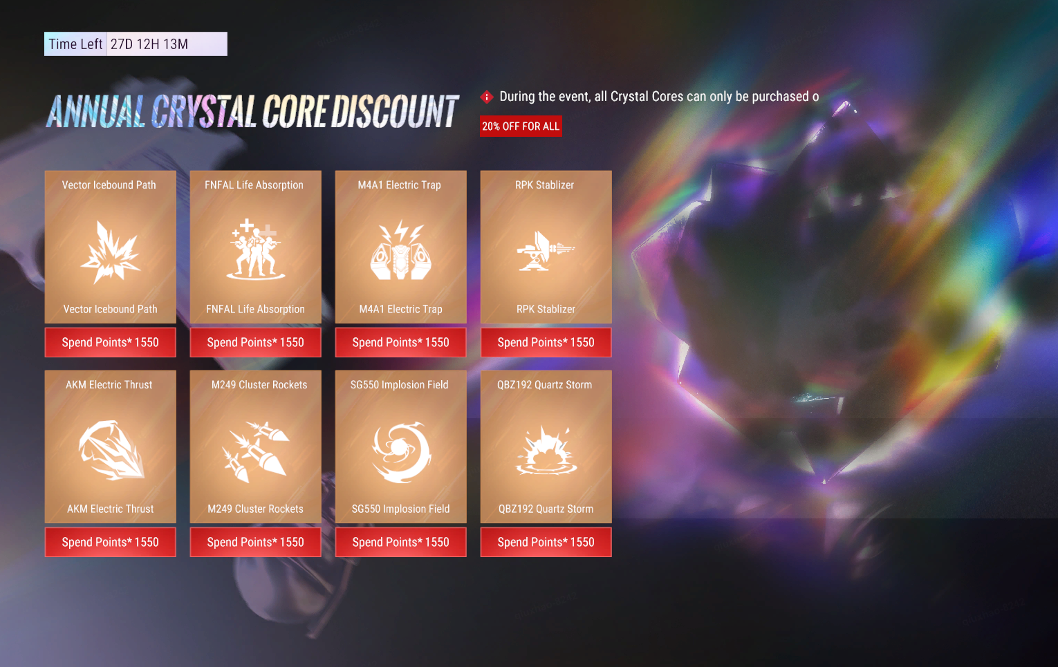 ■ Purchase Crystal Cores once during the event at a 20% discount.