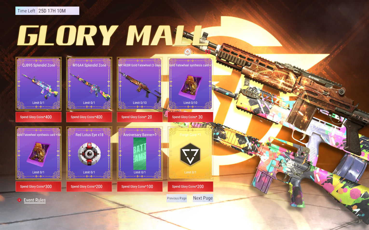 ■ Complete tasks to earn Glory Coins. Redeem these coins for exclusive items at the Glory Mall.
