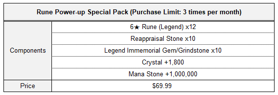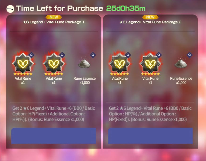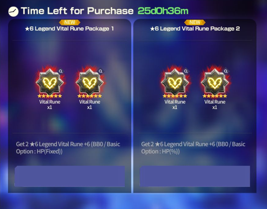 [★6 Legend Vital Rune Package] ■ Sale Period: Mar 14th Update - 04:00 Mar 28th 2024 (UTC). ■ Products and Price ※ This package can be purchased up to 2 times per account.