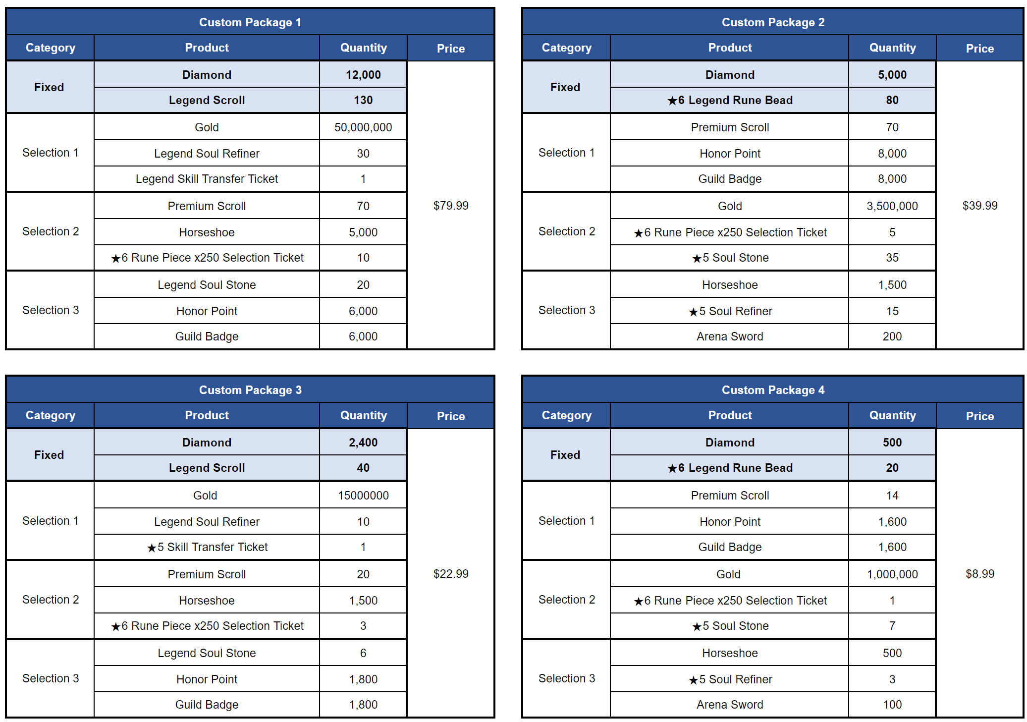 [Custom Package] ■ Sale Period: Mar 14th Update - Apr 11th Update 2024 (UTC). ■ Products and Price ※ This package can be purchased up to 10 times per account.
