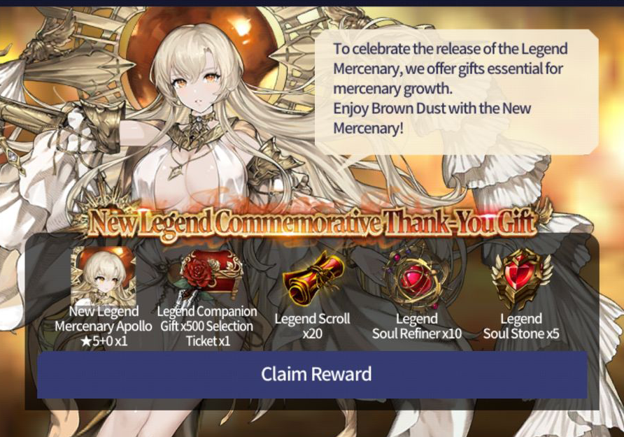 [New Legend Celebration Gift Event] ■ Event Period: Mar 14th Update - 19:59 Apr 10th 2024 (UTC). ■ Details: Claim the New Legend Celebration Gift which helps your Mercenary Growth.