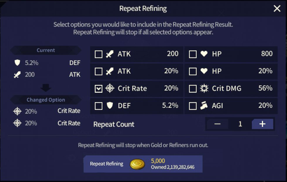 ■ Rune Option Refine Skip Feature Rune Option Refine Skip feature will be added. Obtaining the target options will be more convenient with this new feature.
