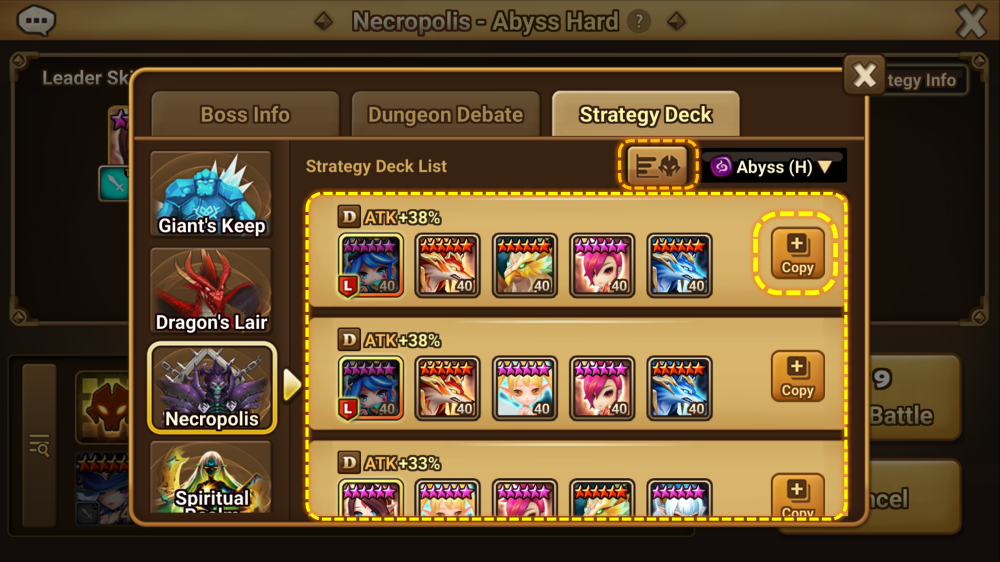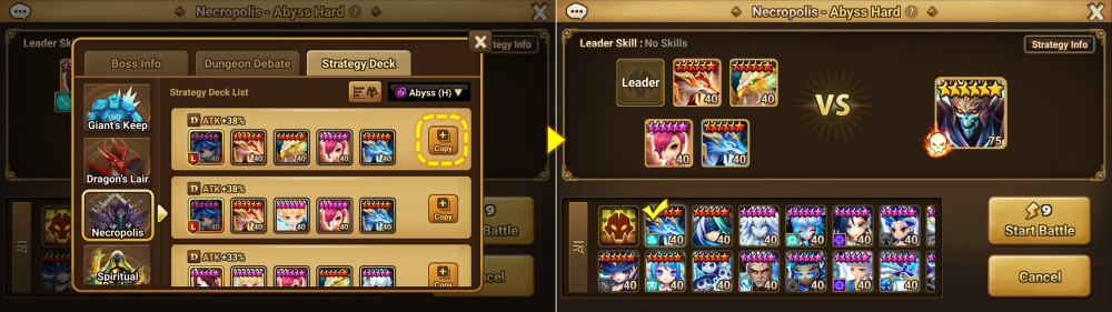 : When there's a [Strategy Deck] tab displayed in the battle preparation screen, you can use the [Strategy Deck Copy] feature.