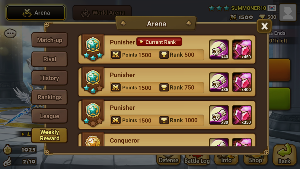 ▶ [Arena] The weekly reward is now displayed in the tab menu. The world ranking refresh info is now displayed in the section where the existing weekly reward was displayed.
