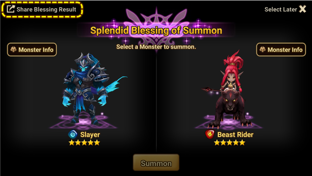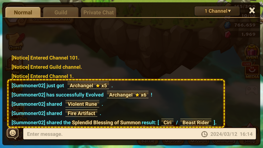 - A feature that allows you to share the results of Blessing of Summon/Splendid Blessing of Summon to the chat has been added.