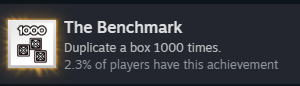 The achievement "The Benchmark" was impossible to obtain due to a bug in the game and considering it was a bit tough to achieve it I have decided to completely remove it from the game. Completeionists can now achieve all of the achievements!