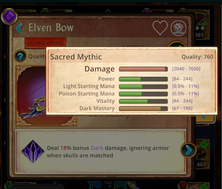 Higher Quality Mythic items also have an accompanying word to describe their Quality:
