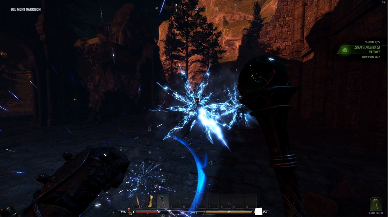 Second, you'll need to find yourself a staff. Staffs can be found in weapon loot chests and will also be craftable. With spells learned and a staff equipped, you'll be ready to fulfill your wildest witch and wizard survival fantasies.