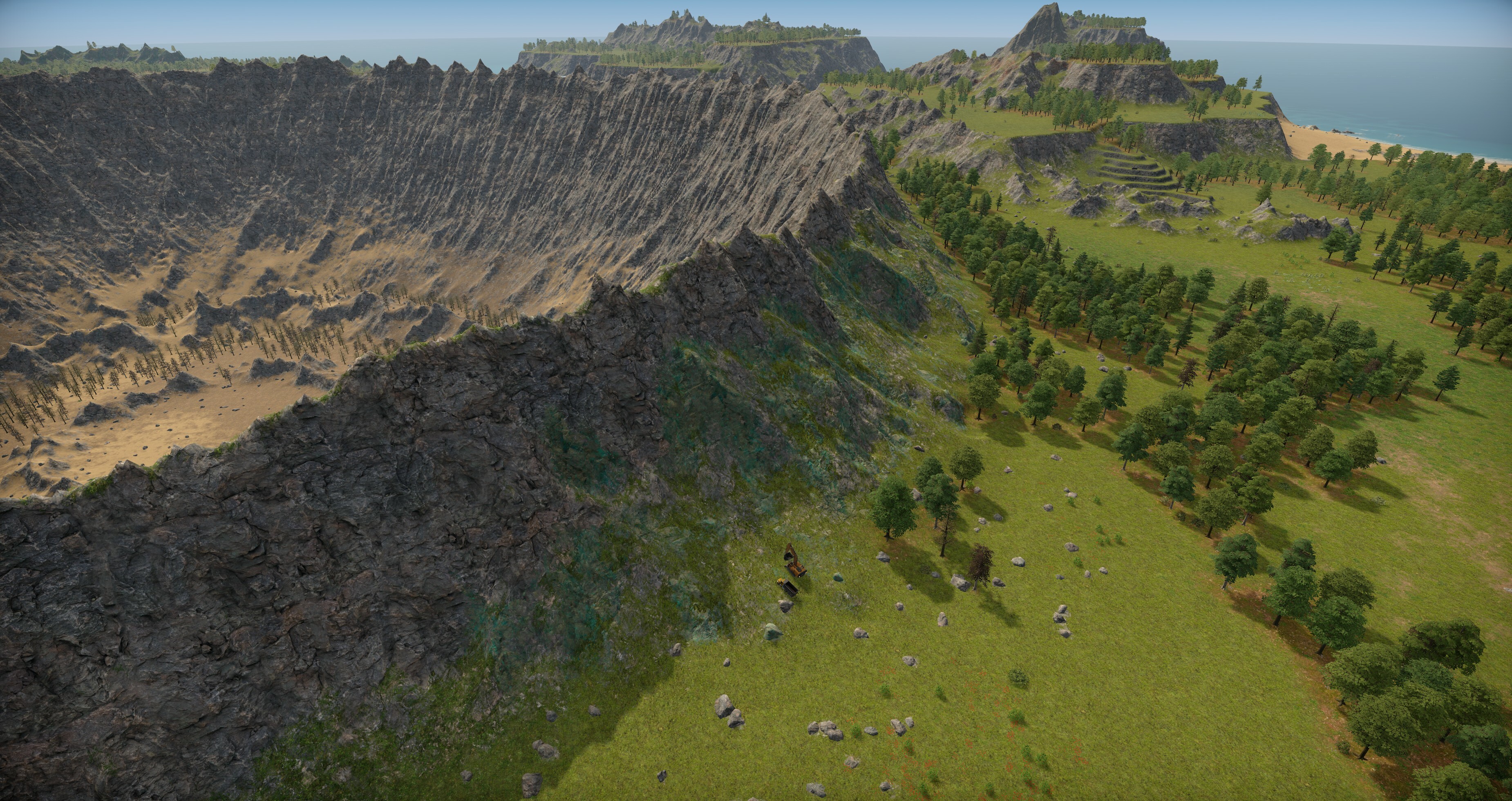 * New hydraulic erosion simulation that makes the terrain (especially mountains and cliffs) look more realistic.