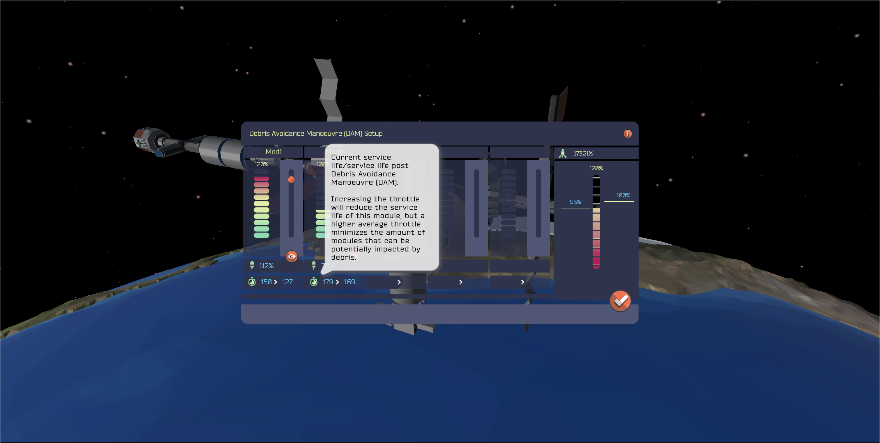 The mechanics behind the 'Debris Avoidance Maneouvre' (DAM) have been changed accordingly in order to reflect all the newly introduced changes to the propulsion mechanics.