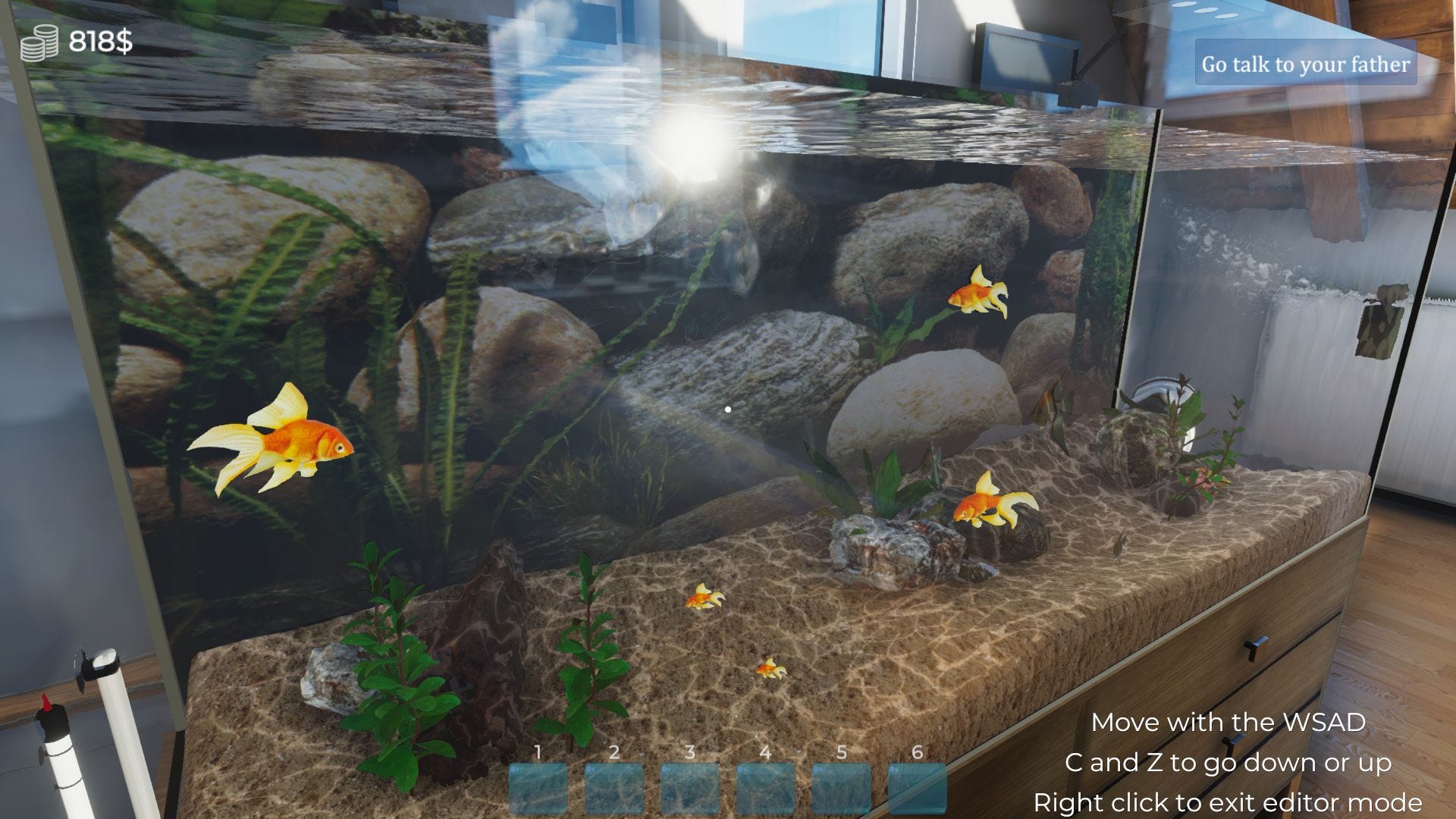 I know some of you will quibble with the headline, so let me confirm straight away that, yes, technically Aquarist is not a game simulating being an aquarium. An aquarist is someone who builds and manages aquariums, which is your principle task in the capital A Aquarist game. It recently left early access, which is sort of unbelievable because it's very janky in the most adorable way. You can tell it was made by someone who bloody loves> aquariums, but taken at face value the career mode tells a strange tale indeed. For example, you have a very unsettling father.