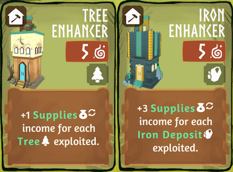 Another type of building we're adding are the Enhancers. They don't do anything when placed, but they'll amplify any future exploitation. Draft wisely!