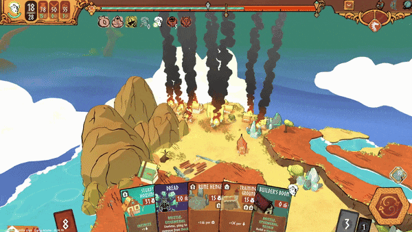 Draugr can now raid your camp, setting fire to some buildings. Each turn, the fire will spread. After 3 turns, buildings on fire will be destroyed. You can stop the fires by building a Might building adjacent to it. Before you decide to ignore the fire spreading, make sure Skidbladnir is safe!