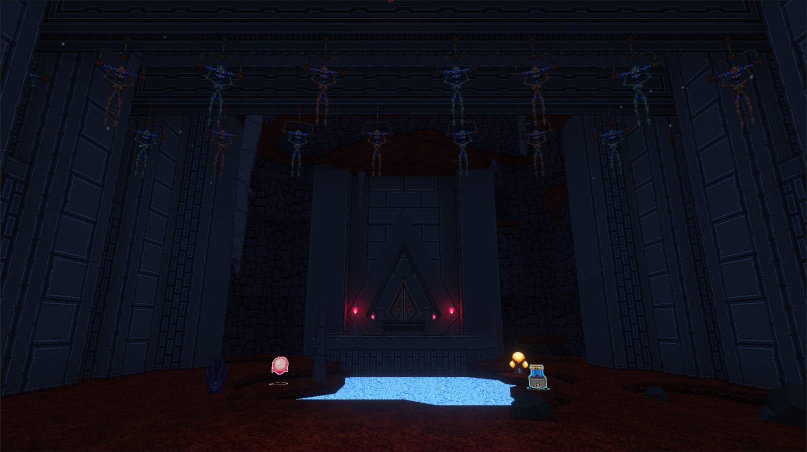 As is per usual now several Chapter 3 textures have been updated and polished up, as well as the sprites for a few props. Some pre-existing props have received tweaks to better situate them within the context of outdoor environments. Several of the game's older liquid textures such as blood, Milk, and the various Liquid "falls" have finally been updated and given the proper pixel scaling. One special little enemy I can't talk about has received a great deal of artistic love put into his fun little hives.And now finally, the Sacrifices have received some sprite sprucing up! Speaking of which...