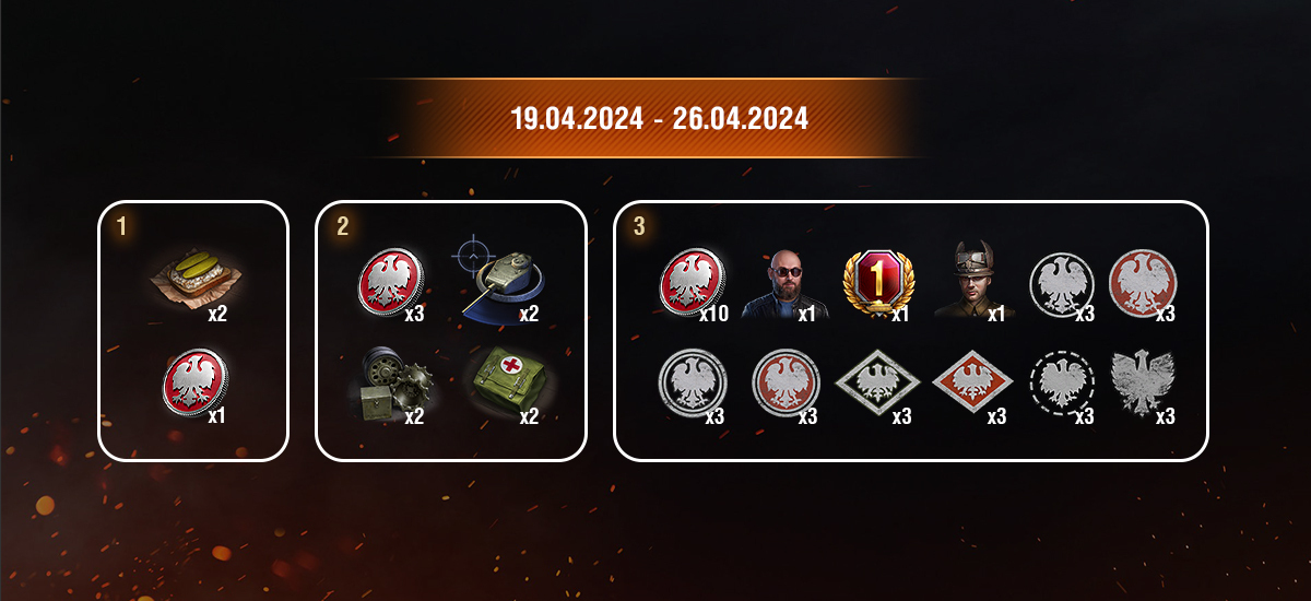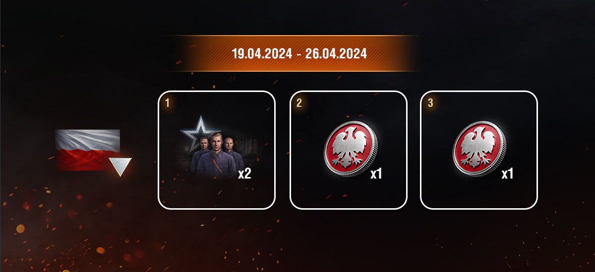 A new mission for any Tier IV and up vehicles is revealed every day of the event. Complete them to receive more White Eagles, unique historical Polish emblems, special Commander Cygan, and other valuables!