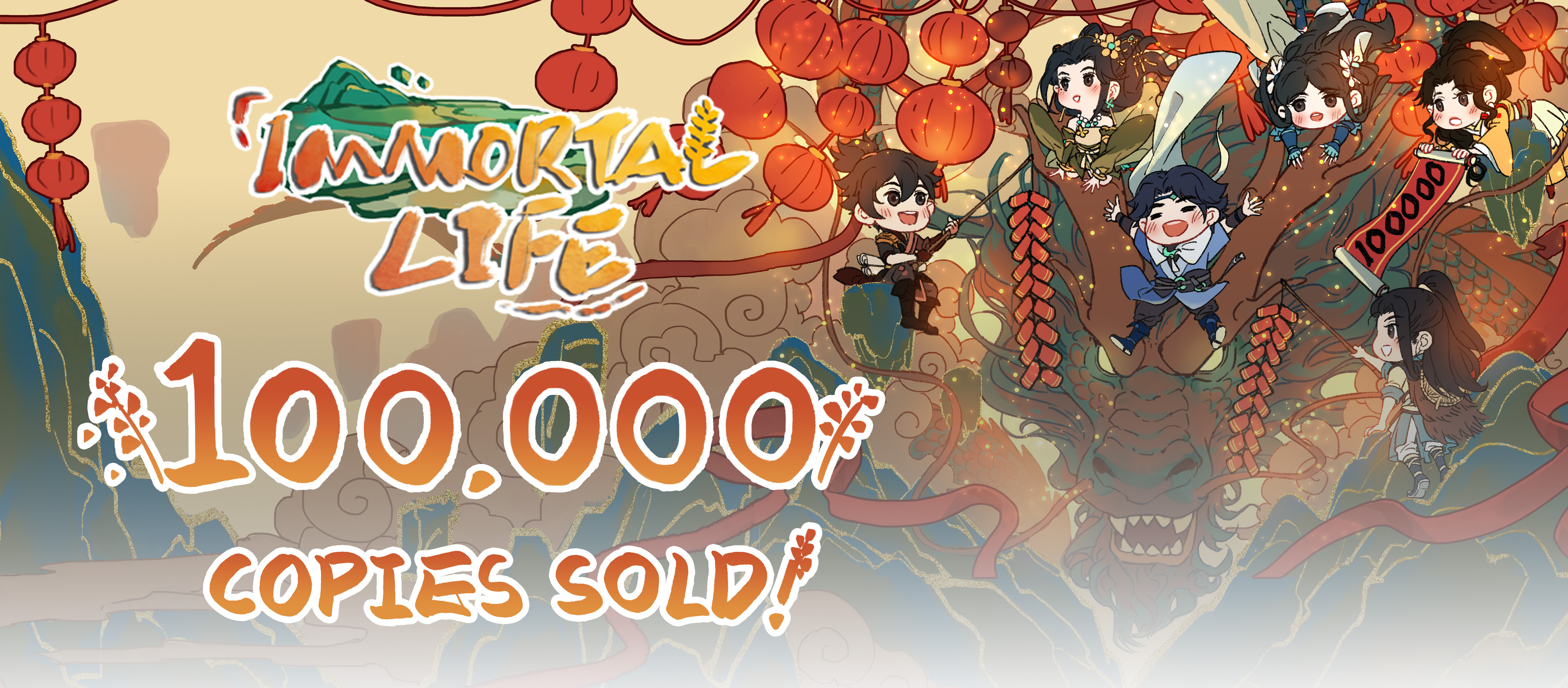 On this special day of reaching 100k milestone, we, the members of the team, would like to express our gratitude for the support we have received during this 2-year journey. The achievements and progress we have made are because of the wonderful community and your brilliant suggestions and kind words that have been the backbone of Immortal Life. We will keep working on the game, making further improvements and adding more content in the future.