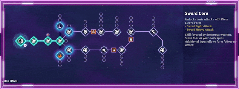 We’ve already briefly mentioned Ezekiel’s unique weapon, DIVOS, and its unique forms - astras. As the story progresses, our hero will unlock additional forms, and dedicated skill trees along with them. In a traditional RPG fashion, leveling Ezekiel up grants bonus DIVOS points to invest in those trees. It’s not all set in stone, though - aside from predefined perks, each tree comes with empty nodes which can be filled with special Orbs that further allow to develop individual character stats.