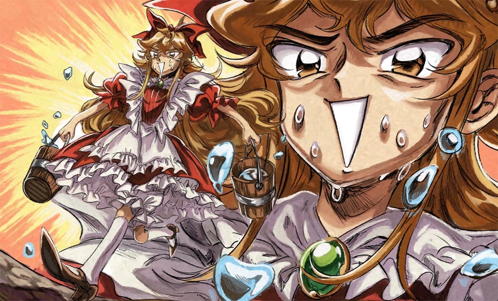 Below is an illustration meant for one of said riddles in which Elise would have to figure out which buckets (from a selection of four and each with distinctive characteristics) she would have to use in order to make it to the well and back in only one trip.