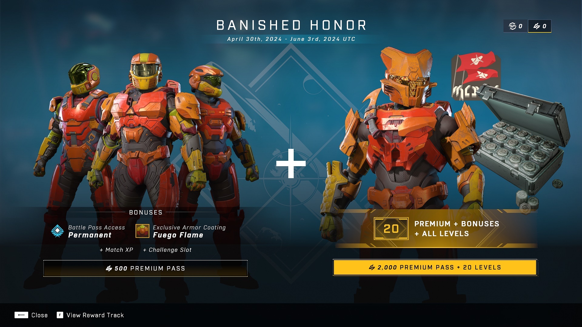 Progress your Operation Pass with Match XP and Challenge completions, and unlock new armor, a new visor and emblem, and Spartan Points to spend in the Exchange.