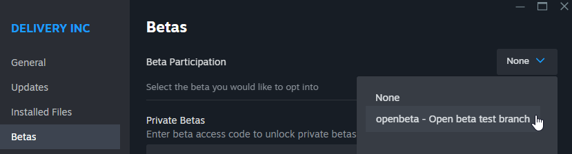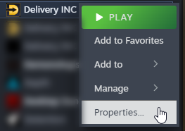 Right-click Delivery INC in your Steam library and choose “properties”.
