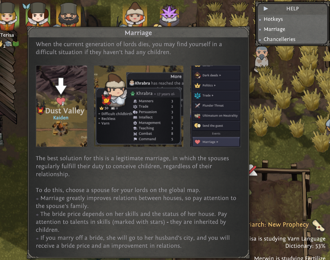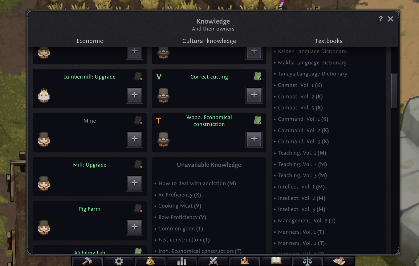 Some knowledge can be passed between lords during regular deep conversations, but now we have added the social action "Wise Conversation," which greatly increases this likelihood. We have also reworked the mechanism of knowledge generation among lords on the world map, so some will acquire significantly more knowledge than others. Invite them to gain rare knowledge from other cultures (or kidnap them).