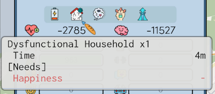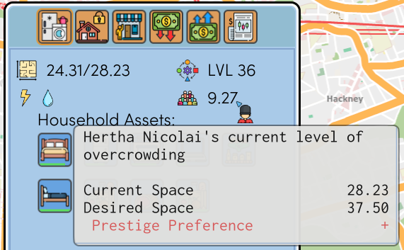 A person who loves prestige will demand more space, while someone who hates prestige will be fine with less. Larger households will demand more living space sooner. Ignoring their demands will increase the chance of gaining the Wistful status, which lowers happiness.