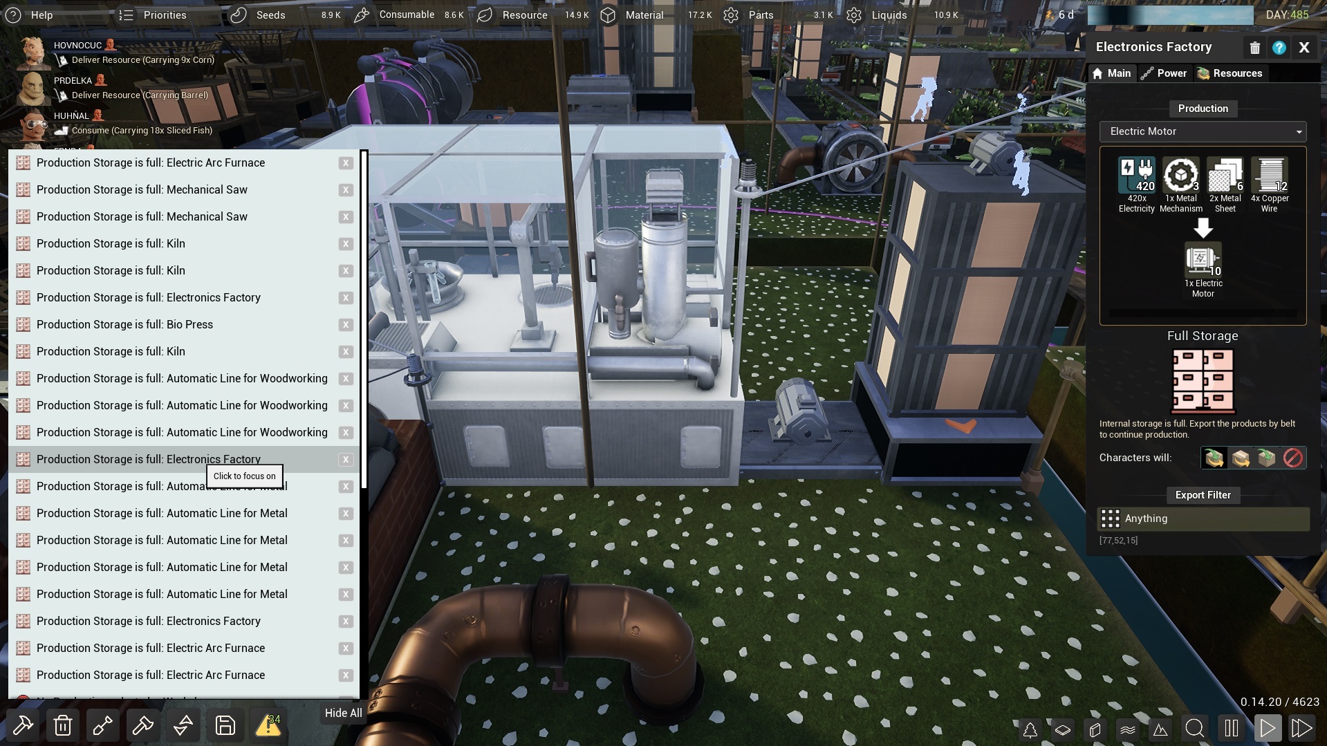 The camera now focuses on factories with warnings after you click on them