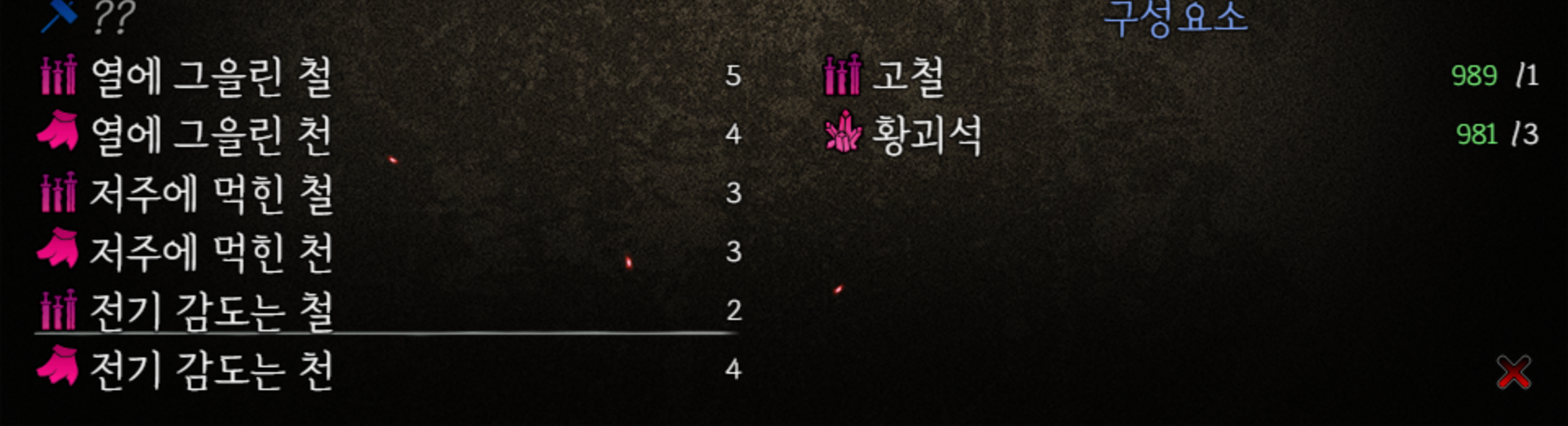 * 9 types of material items are added. * 12 types of remnant items are added.