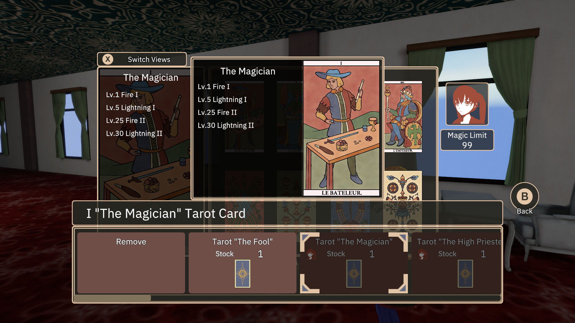 The Major Arcana cards give you magic powers. You can fight using a variety of magic depending on which cards you equip. There is a limit to the number of cards you can carry, so strategize which magic you want to use.