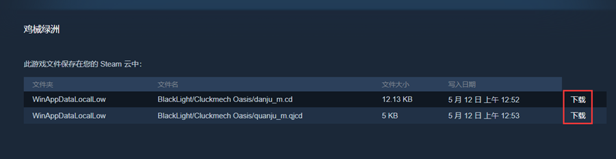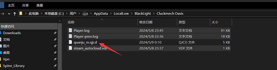 3. Move and paste the downloaded and renamed archive files into this directory: C:\Users\你的用户名\AppData\LocalLow\BlackLight\Cluckmech Oasis