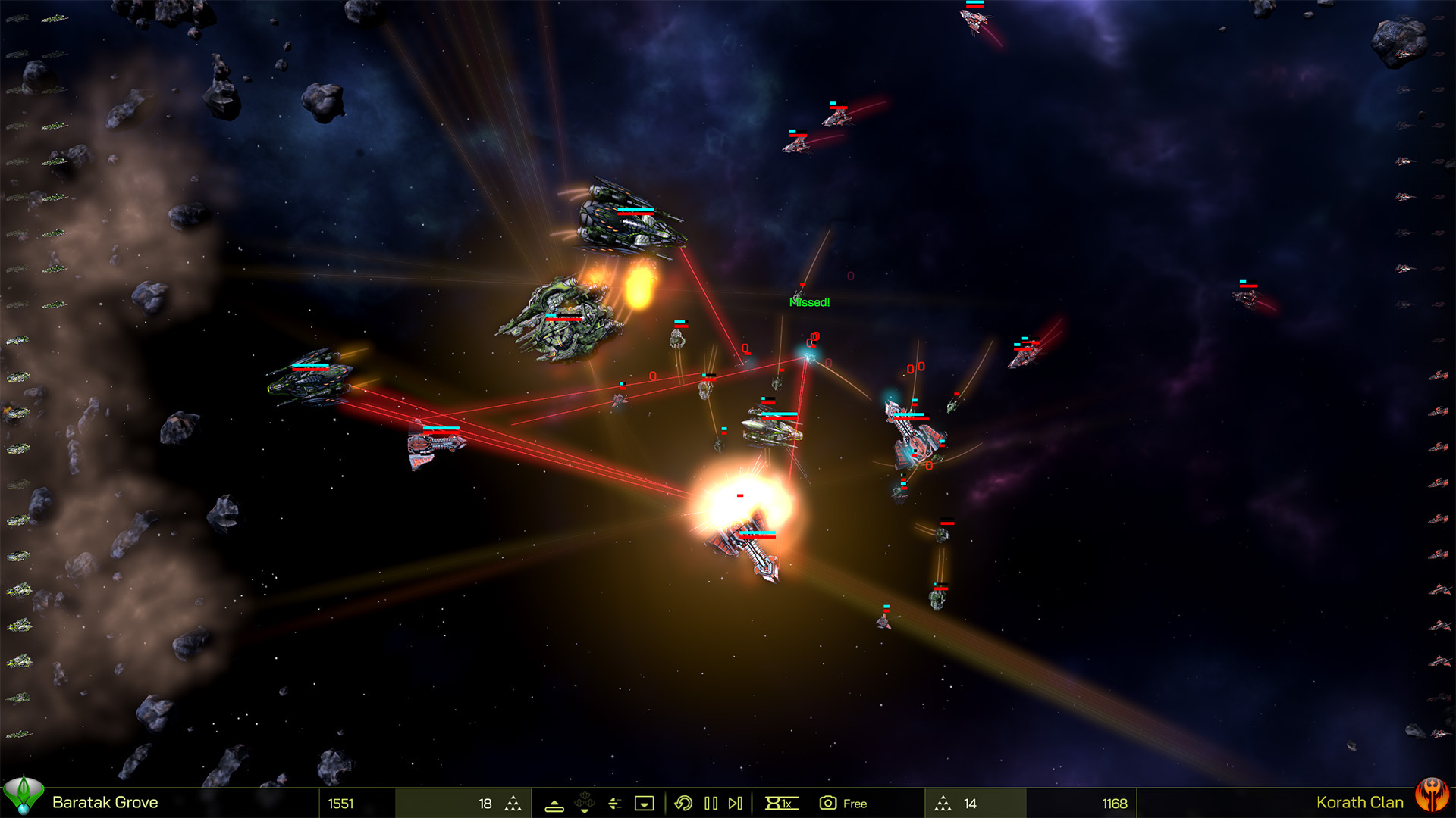 That’s a bit better I think! Not an overwhelming victory but better than the sad, crushing defeats that the Korath were subjected to before. My intuition that the enemy bombers were the big threat wasn’t too far off the mark: here the Korath Clan have traded well, with more ships left over at the end of the battle than their plant-based rivals. I expect that focusing on the Frigates and Cruisers could also yield better results too.