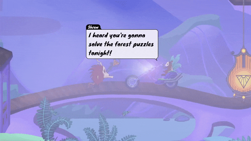 Shrew is your excitable friend who's very invested in you solving the forest puzzles tonight for some reason.