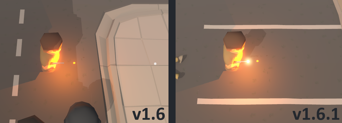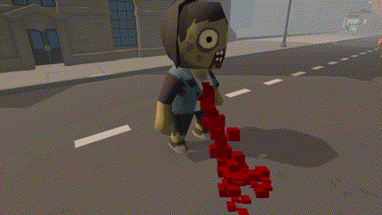 We added physics to the blood; when you get hit by a zombie or shoot one, some blood particles are emitted, falling to the ground and disappearing after a few seconds.