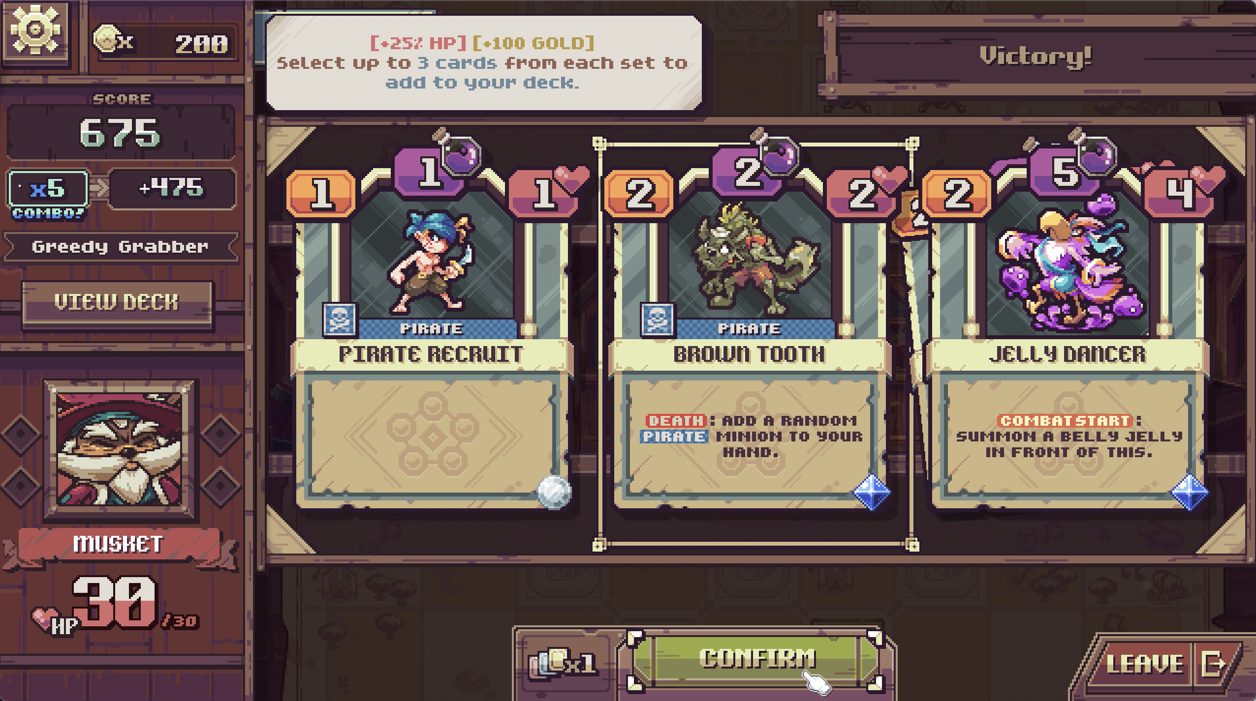 Party Cards: Unlocks a new party card for a specific mercenary, it can be equipped to the player's starting deck in the Mercenary Select screen.
