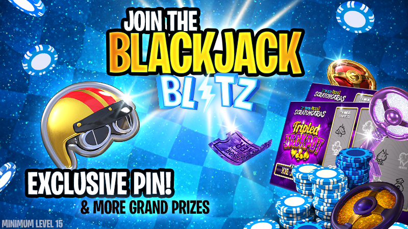 🎉 Play at the Blackjack Blitz Event, collect points, and WIN AMAZING REWARDS like tickets, Balloon Entry Keys, spins, scratch cards, and much more, plus the exclusive GOLDEN HELMET PIN! 🎉