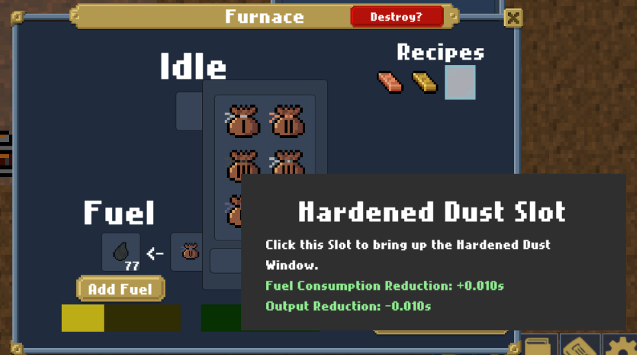 Fusion Machine is now fully implemented. You can now see and use the Hardened Dust Slot.
