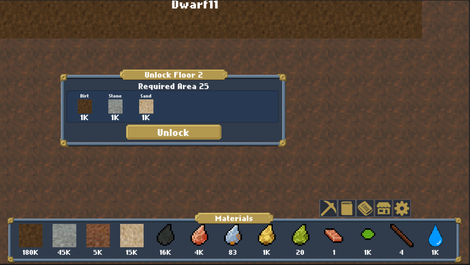 Floors now have a Level System. Floors can gain experience by Dwarves being active on that Floor. When a Floor levels you will gain a Stat Point to spend on randomized list of properties to help your floor.