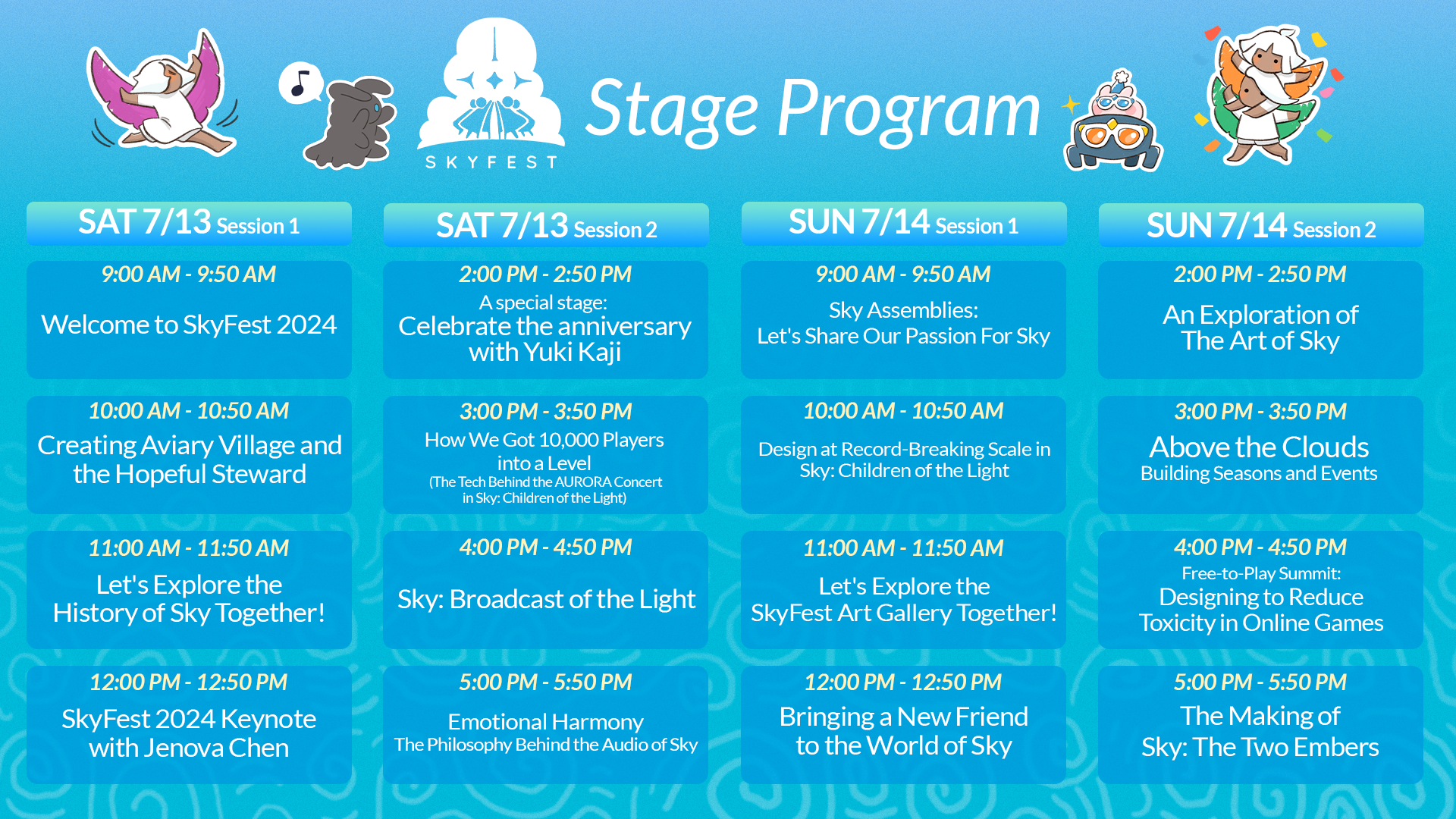 Each session will have something different, so be sure to get a ticket if there’s one you want to attend. After the event we’ll be sharing recordings of the keynote and other talks. But we did want to mention this—The “Let's Explore the History of Sky Together!” talk will be linked to activities in Sky. We’ll share more details about the parts of SkyFest that take place in the game, so stay tuned!