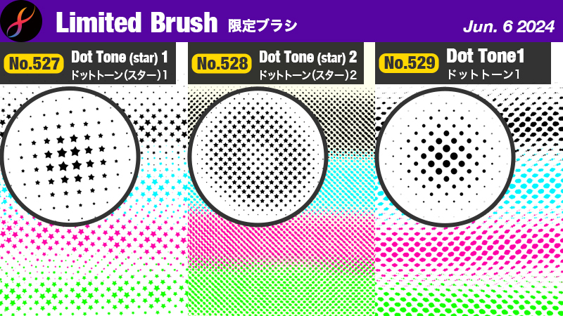 3types of 'Dot Tone' brushes have been added! A stamp brush that creates a dot easily. Those brushes are available to download only with FireAlpaca SE.