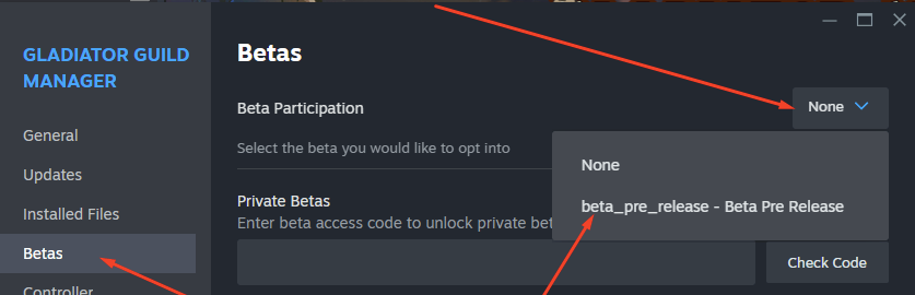 Select the game in your library. Then click on the gear icon and Properties. In that window click on the Betas tab. Next, click on the dropdown that currently says "None" and select "Beta Pre Release." Your game will update to the beta version.