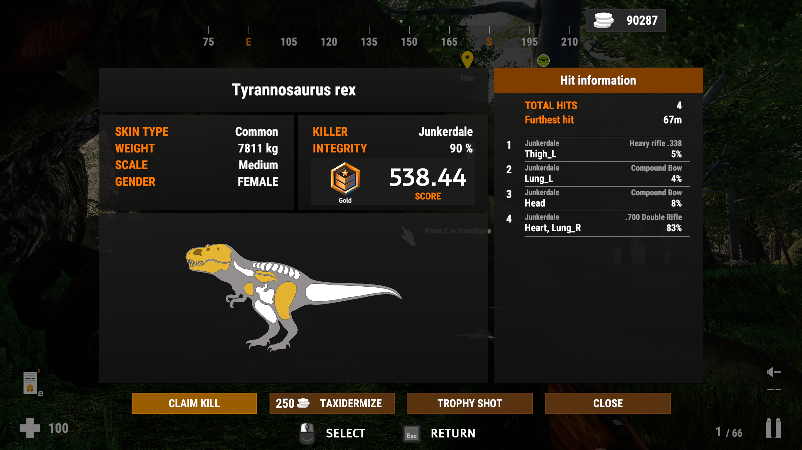 The trophy screen displays more information of each shot: What weapon was used and how much of the total damage the shot caused.