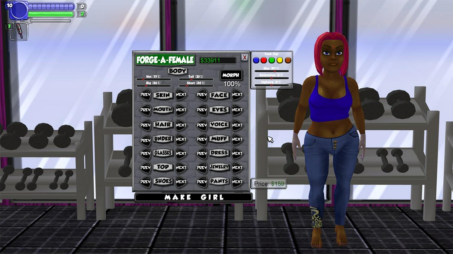 In BoneTown, you've always been able to cycle through Hookers to find a girl who's appealing to you--but in the Kinks DLC we've taken it way further. Now, you have the power to create the exact girl you want to bone. This new feature is called Forge-A-Female.