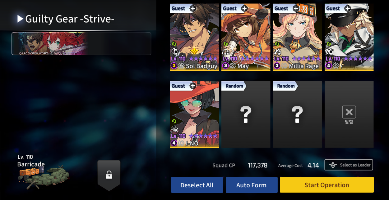 Fixed 5 Slots, slotted with GUILTY GEAR -STRIVE- employees