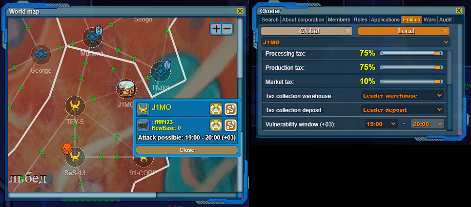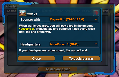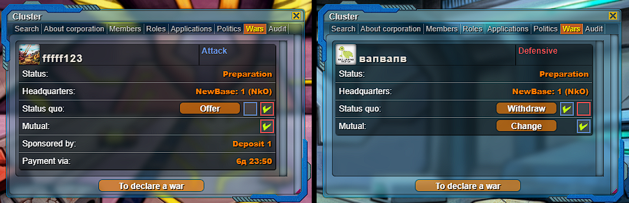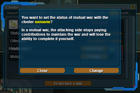 Two clusters take part in the war, one of which is the attacking side, and the other is the defending side. The warring parties are not subject to the rules of justice, even in safe sectors.