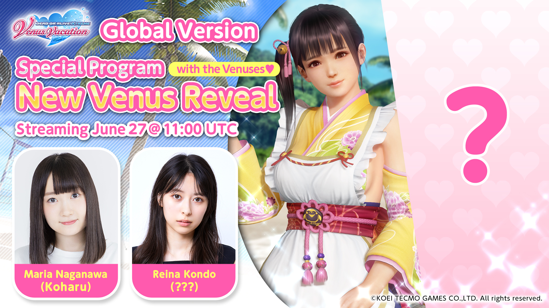 Dear Owner, On 6/27 (Thu) 11:00 UTC, we will be broadcasting a Special Program to celebrate the new Venus reveal. This Venus is the first Venus to appear simultaneously worldwide. We will be inviting Maria Naganawa who voices Koharu and Reina Kondo who voices the new Venus to celebrate the new Venus reveal with us. We will be sharing the latest information with regards to the new Venus update, as well as a special voiceover segment. We have also prepared an in-game photoshoot segment, as well as a “Real Gacha” segment in which amazing prizes such as “SSR Tickets” can be obtained! Let’s have an amazing time celebrating the first worldwide simultaneous new Venus Reveal together with the wonderful guests! The show will be broadcasted on the Steam store page, but if the live stream stopped due to technical issues, please visit the official DOAX YouTube channel to continue watching. ・DOAX Official YouTube Channel https://www.youtube.com/channel/UCTNQP_51ym1B9EQKaOwi_sA