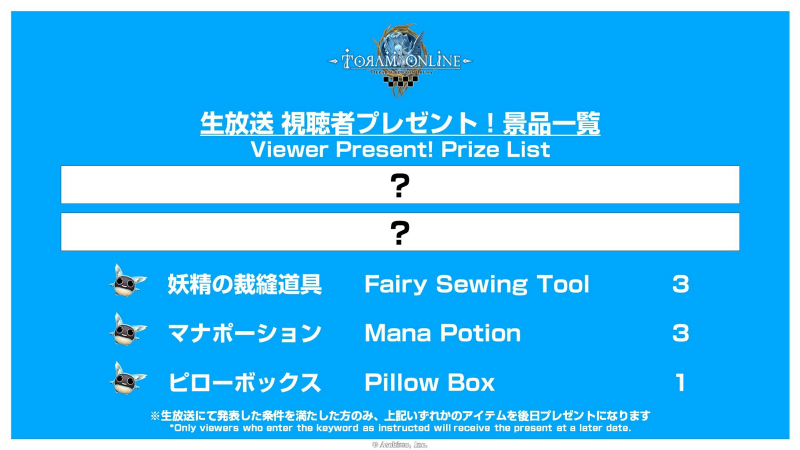 *Only the players who enter the livestream "keyword" at the determined place during the specified time are eligible for the gift. *"Keyword Gift will be sent at a later date!" will be shown when the keyword has been received. *You need to enter the "keyword" exactly the same as instructed. You will not be eligible for the gift if you make some changes to the keyword while equipping certain avatars. * If you are playing on a platform with an active 30 Days Ticket, the deadline for entering the "keyword" will be extended by 10 hours.