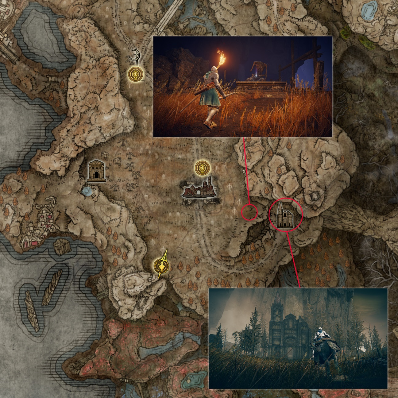 If you are near the early Site of Grace “Gravesite Plain”, you can obtain “Scadutree Fragments” from the Church of Consolation and “Revered Spirit Ash” from the corpse of a hornsent on the edge of the Scorched Ruins.