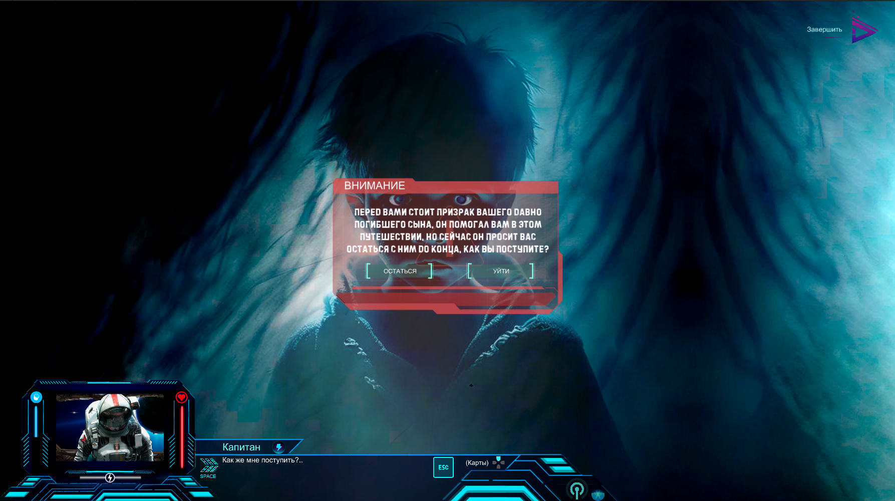 The captain must go to the engine room and stop the engines. After Valery uses the skill and opens the last lock in the skill menu, the engines will be stopped. But he will appear in front of him. The one who accompanied him throughout the journey. His son. Even before the service, Valery lost his only son, Vitya. This time the ghost asks not to leave him, but to stay with him on the spaceship. Forever.